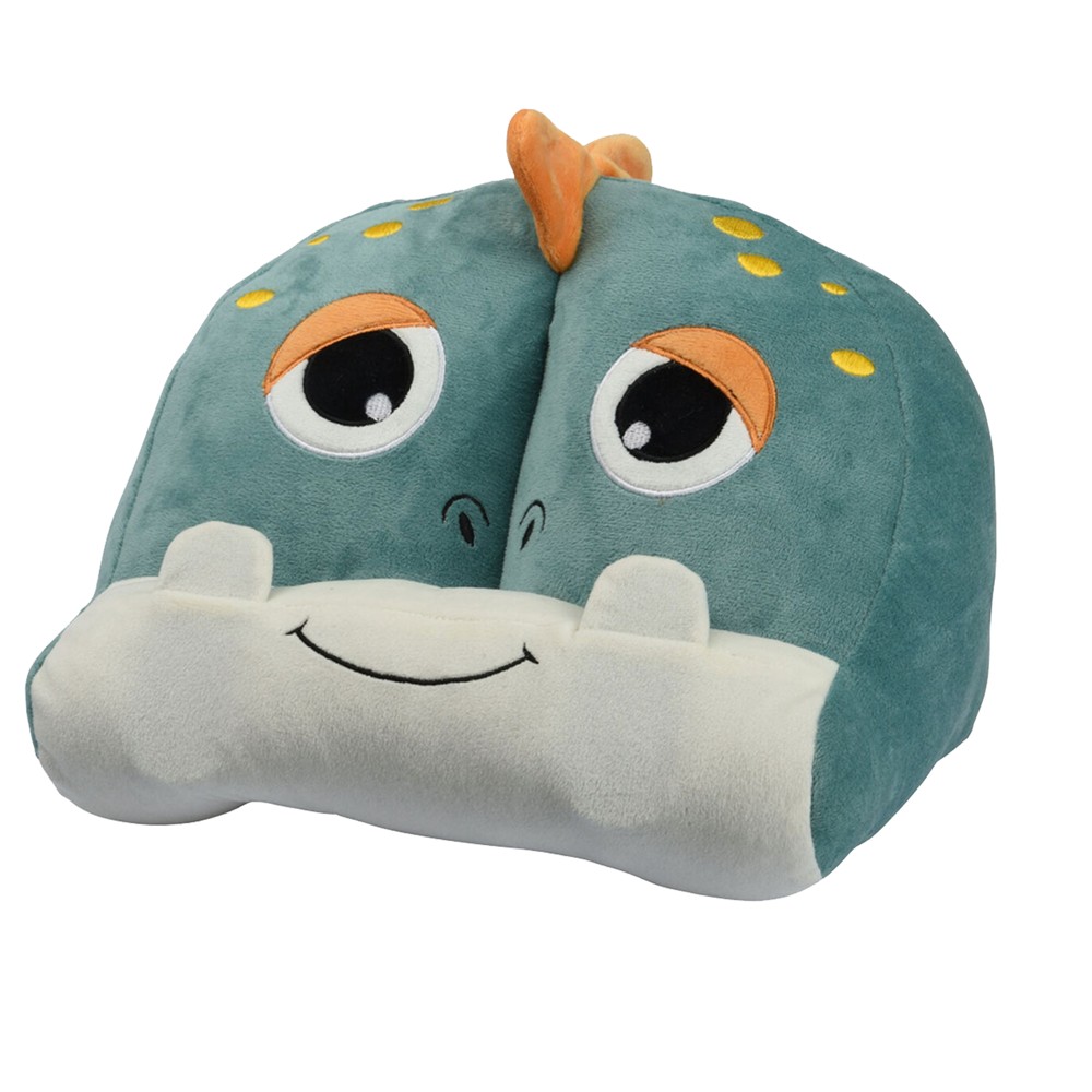 Holder for tablet or book, made of soft plush material, in the shape of a green dinosaur, and in a size of 30x20x20 cm. With this holder, children will be more attracted to reading books or watching their favorite movies on the tablet.