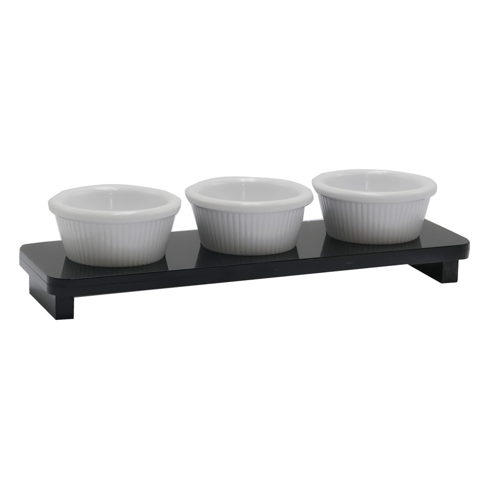 Bowl holder 3 places, melamine, black, 24x8xH6 cm