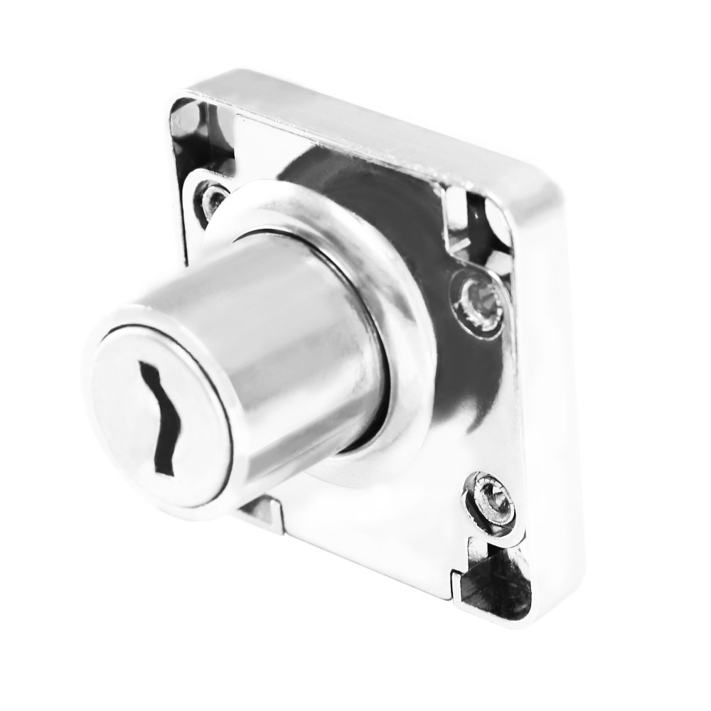 This drawer and cabinet lock fits up to a 25mm thick panel. Uses mortise installation and keeper is included. This drawer and cabinet lock come in a chrome plated finish.