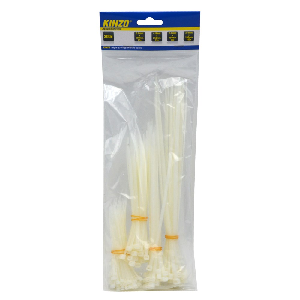 You're reviewing:Cable tie, Kinzo, 3.6x200 mm 25 cop, 4.8x250 mm 25 cop, 3.6x150 mm 50 cop, 2.5x100 mm 100 cop