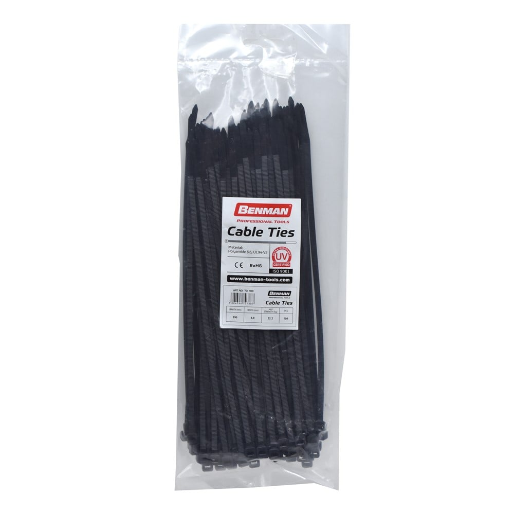 CABLE TIES, BLACK, BENMAN, 250mmX4,8mm (100pcs)