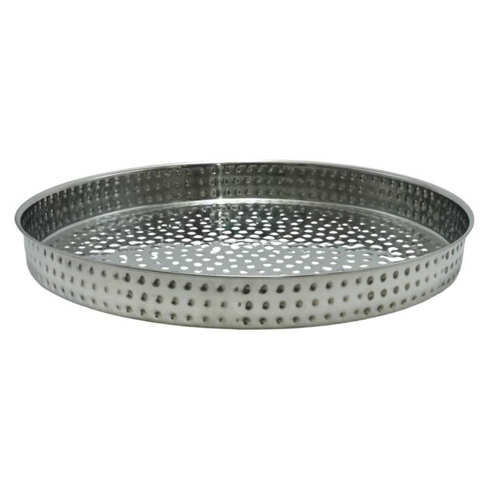 Silver cake holder/stand. It is made of stainless steel. Ideal for decorating any area of ​​your home you want. Ideal for placing your cake or sweets on any festive or everyday occasion. The dimensions 35 x H. 2.5 cm make the latter accessible and very easy to store.