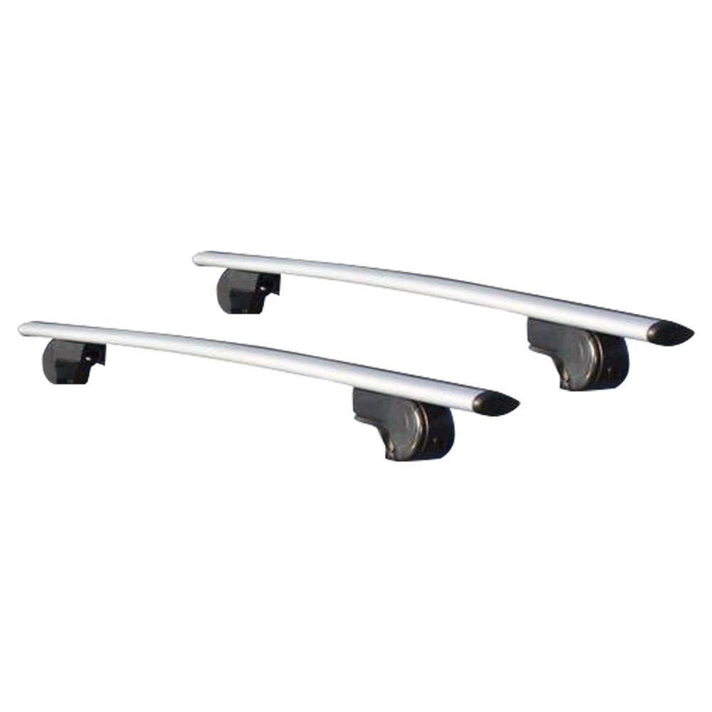 Roof rack for open rails, pre-assembled (bars and fixing systems in the same box). Approved for a maximum load of 100 kg. FLY aero bars (anodised aluminium), clamps in black-painted steel, coated by scratch proof rubber.