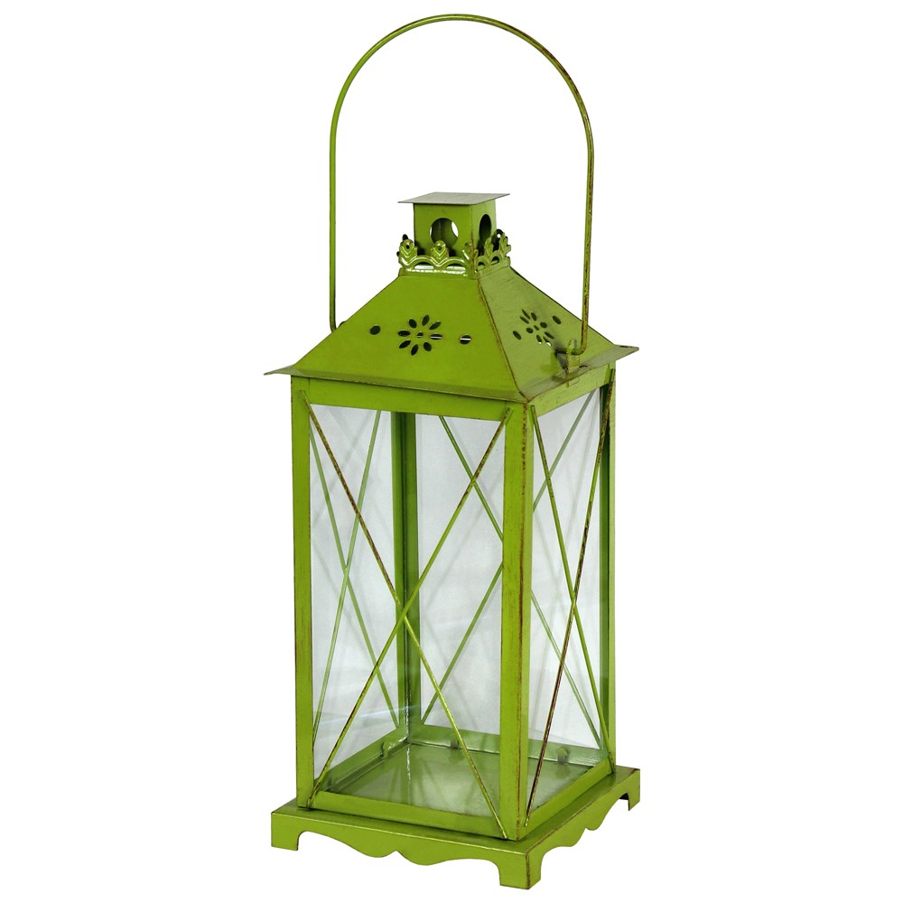 Candle holder, metallic and glass, green, 14x14xH34 cm