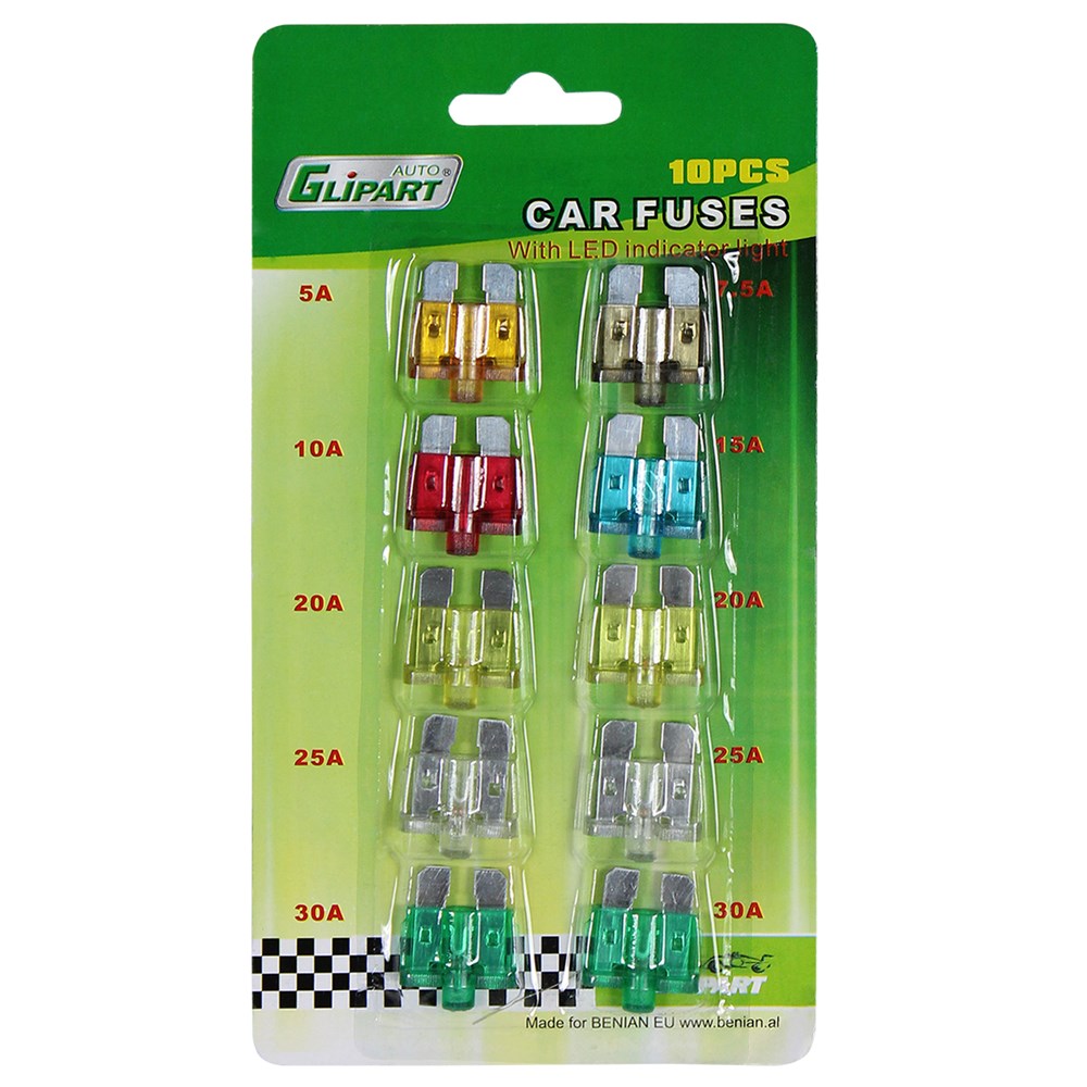 Car fuses 10 pcs in blister, from 5A-30A. A fuse used to cars in fuse block.