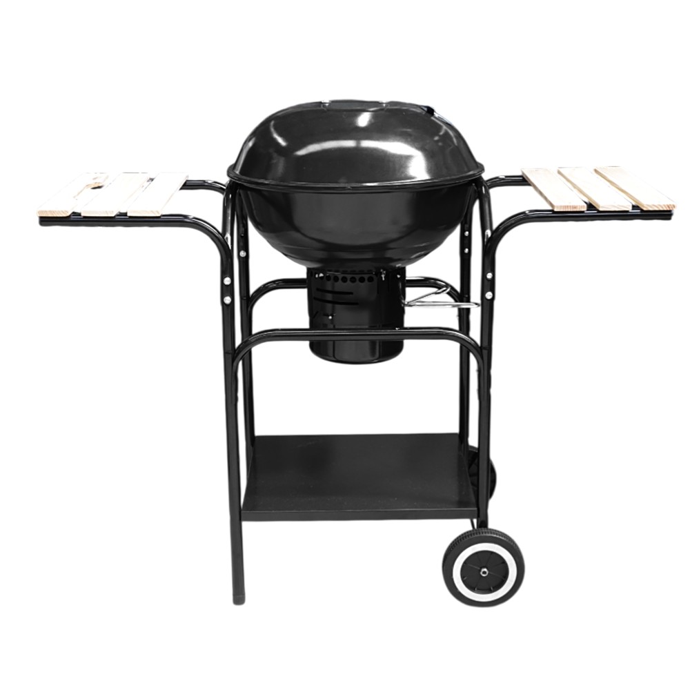 This charcoal barbecue is perfect for those who want to enjoy the true aroma of traditional grilling in any outdoor environment. With a practical and durable design, it offers a pleasant and comfortable experience for any cooking in the garden or veranda. Made of black enameled material, making it heat-resistant and easy to clean. The cooking grate with a diameter of 45.8 cm, suitable for varied and abundant grilling for family and friends. It has two wooden side tables, practical for holding food, spices or accessories while cooking, offering complete organization and convenience.