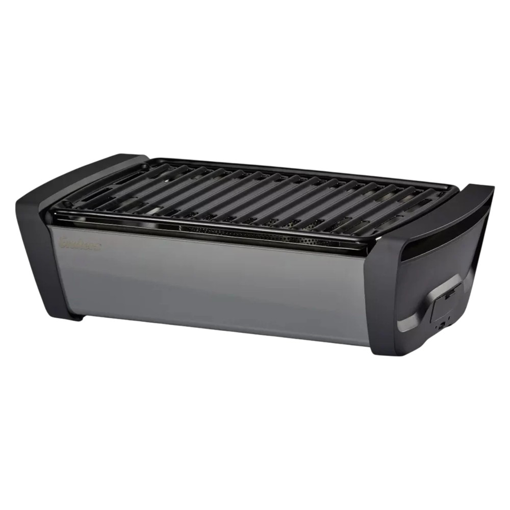 This charcoal barbecue is ready to use in seconds. Simply fill it with charcoal and light it. Activate the integrated E-FAN fan to start grilling immediately. This barbecue grills almost smokelessly, thanks to the fan that regulates oxygen without causing smoke. The fan operates on 4 AA batteries that are not included in the package. The innovative E-FAN BBQ Fan technology makes the BBQ extremely quiet and quick to ignite. Made of steel material painted with heat-resistant paint and enameled steel grill, for even heat distribution. Compact and ergonomic design, perfect for transport and daily use. Ideal for balconies, gardens or camping tables.