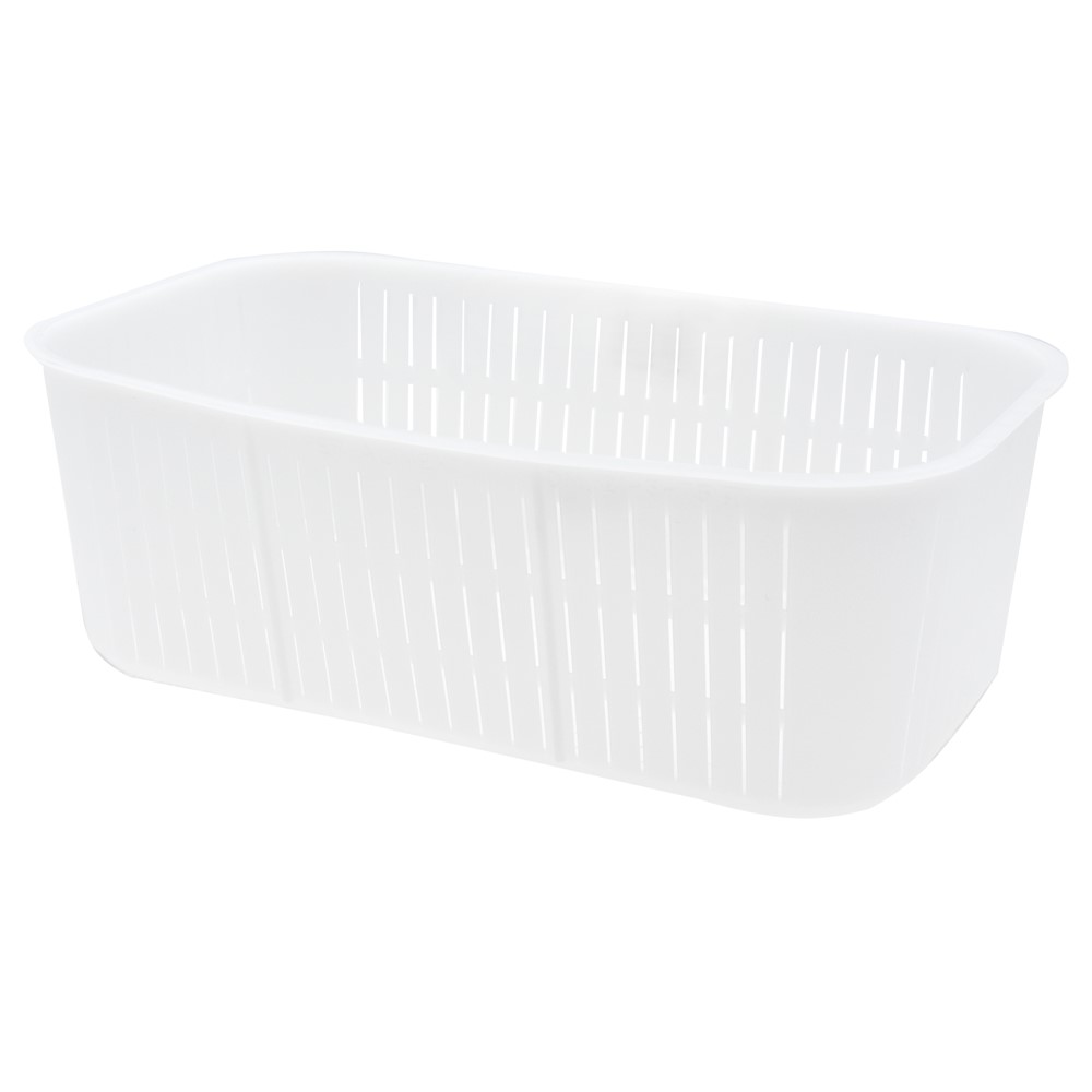 Plastic mold for holding cheese. The molds hold the cheese, compress it and give it the shape of plastic. Suitable for use in the home, restaurants, etc.
