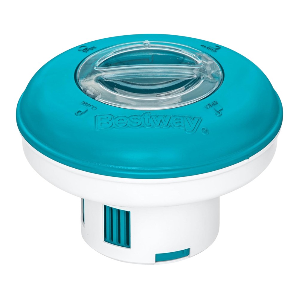 Ideal for dosing chlorine in Bestway summer pools. The chemical chlorine tablet is inserted into the dispenser compartment and left in the pool. The dispenser ensures even floating and distribution of chlorine.