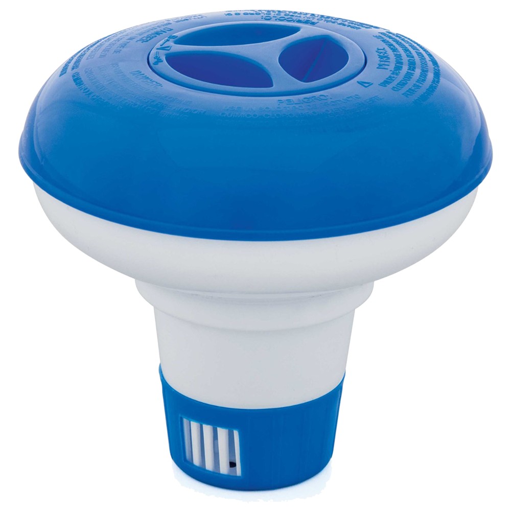The 12.5 cm diameter plastic chemical holder/dispenser is a convenient tool for storing and dispensing pool chemicals. Its use allows for the correct containment and application of chemicals to keep your pool clean and healthy. Its blue color gives it an aesthetic and suitable look for your pool, offering a practical and functional solution for managing chemicals in this environment.