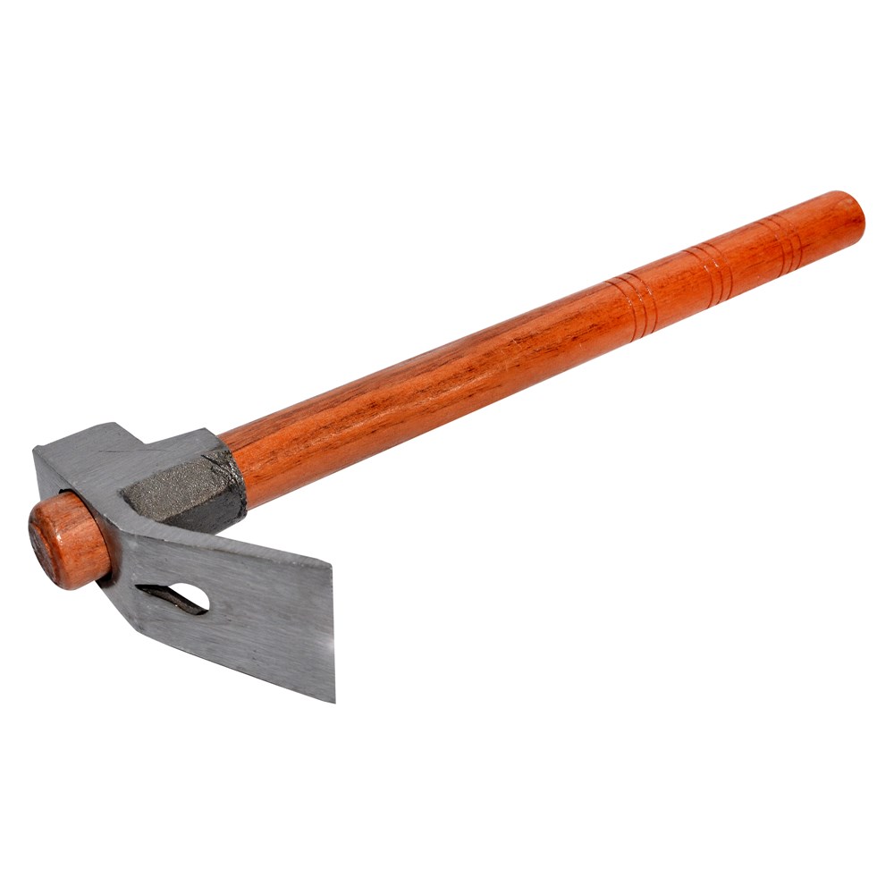Adze with wooden handle, with 450gr weight, is used by builders, masons, carpenters etc. for the construction of concrete mounting. Has a hardness of 42-48 HRC according to DIN 1041.