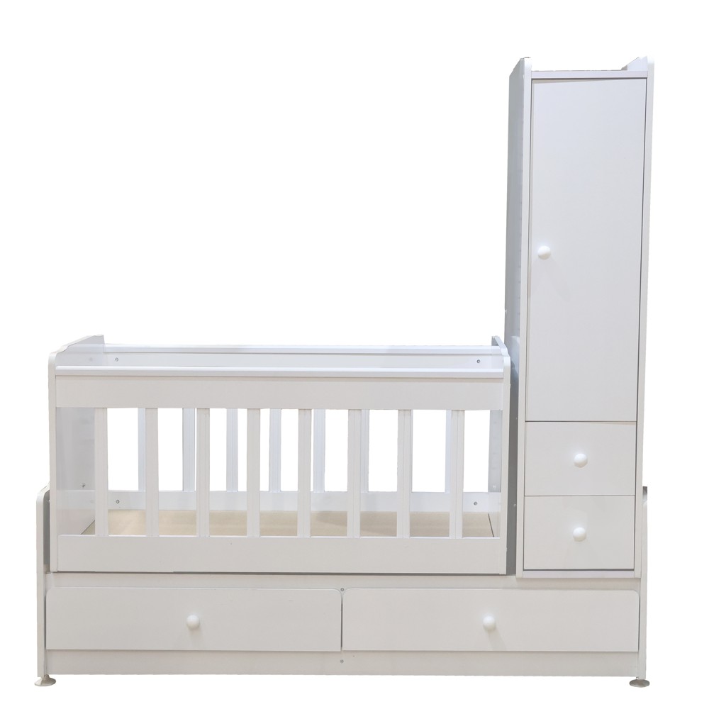 Children's bed Made of MDF material, in dimensions 165x65x180 cm. It has drawers where you can organize the child's clothes as well as a side cabinet. The bed is the place where newborn children spend most of their time, therefore it should be studied and built keeping in mind the characteristics and needs of the child itself. This bed is very resistant, and it is anti-allergic for children.