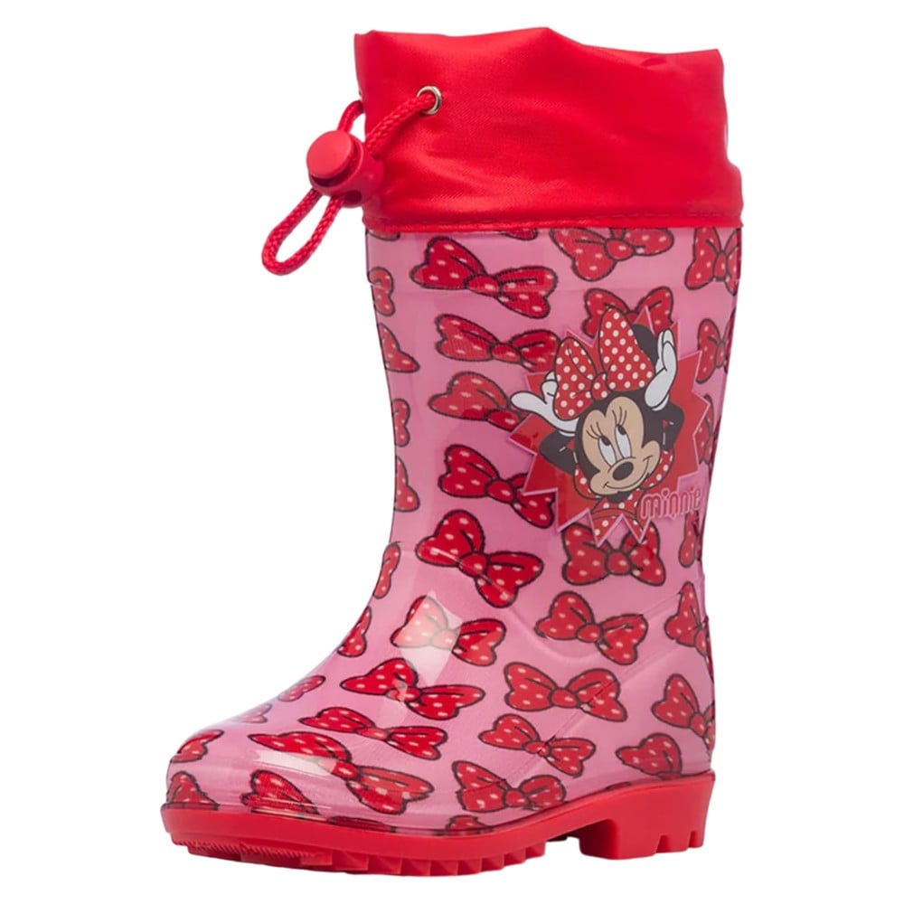Children's boots, Minnie Mouse, are children's boots with the design of Minnie Mouse. The boots are made of plastic material. They are in red, which are the characteristic colors of Minnie Mouse.