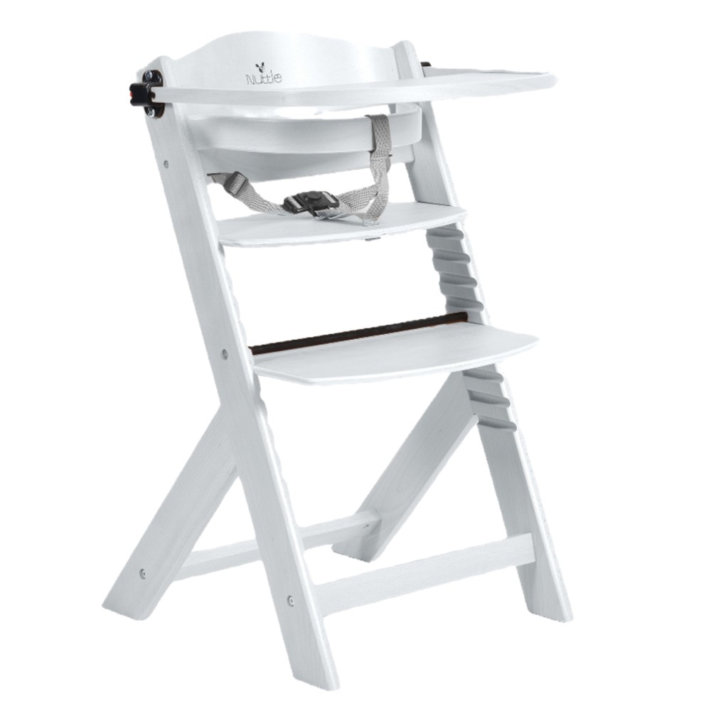 Children's dining chair, Nuttle. The chair grows perfectly with your child and is suitable from the moment your child can sit independently at 6 months up to a maximum weight of 30 kg. This 2 in 1 chair is ideal for use as a dining chair with its own table, or for your child to sit at the table with you as it also fits perfectly on the dining table because the top is removable and the seat is easily adjusted. Thanks to the 3-point safety belt, your little one will be safe in the chair. When your child gets a little older, you can remove these accessories and turn it into a normal chair for your child.