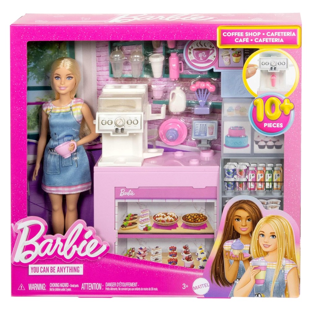 The Barbie ""Coffee Shop"" toy is a fun and creative set, ideal for children over 3 years old. With the theme of a beautiful coffee shop, this toy offers the opportunity to create and imagine different scenes with Barbie and her friends. Designed with beautiful details and vibrant colors, this toy helps children develop role-playing skills, creativity and communication.