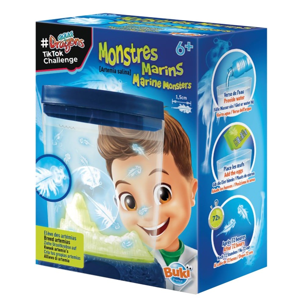 Artemia is a type of crustacean that lives in salt water, but can also stay in fresh water for a short time. They feed on microalgae, bacteria, small protozoa and detritus. At the beginning of their life, they are microscopic and can only be observed in an isolated environment with a magnifying glass. Only one such aquarium was made by Buki. With it you will be able to raise your sea creatures, feed them and watch their development. Pour the contents of the package of brine shrimp eggs into suitable water. Wait for them to hatch, feed them and watch. In the aquarium, phosphorescent rocks are placed, which glow in the dark, and on its wall there is a built-in magnifying glass, so that you can easily observe them even when they are very small, and it is not unlike their body with eyes. free. The magnifying glass magnifies the observed object 72 times. In order to know how to raise the sea creatures properly, a booklet with detailed instructions is also included in the kit.
