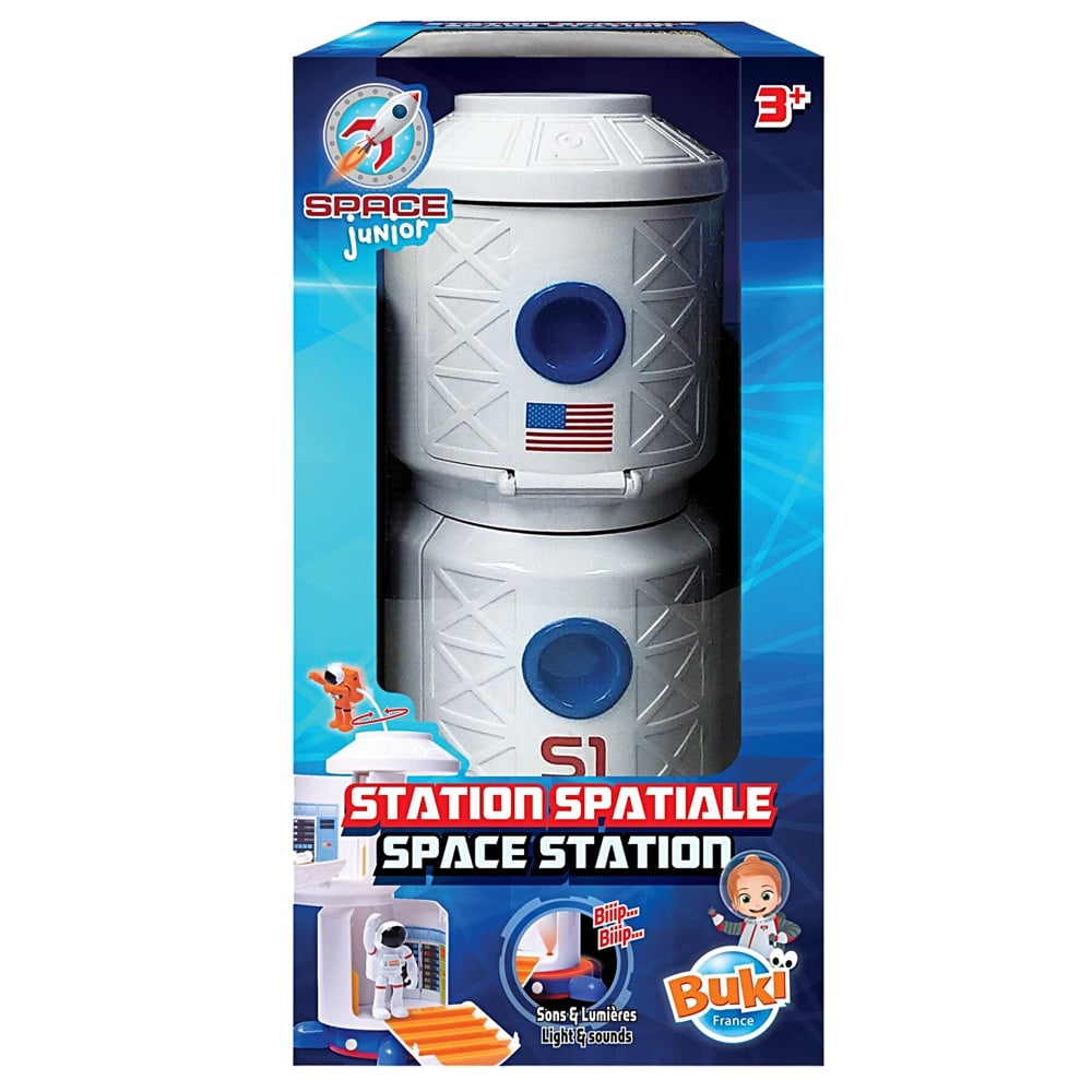 Every little explorer will be fascinated by the realistic space station. When the white button is pressed, sound and light effects are activated, which will make the game even more exciting. Open the doors, rotate the modules and seat the astronaut comfortably, turn the dial and send him on a spacewalk.