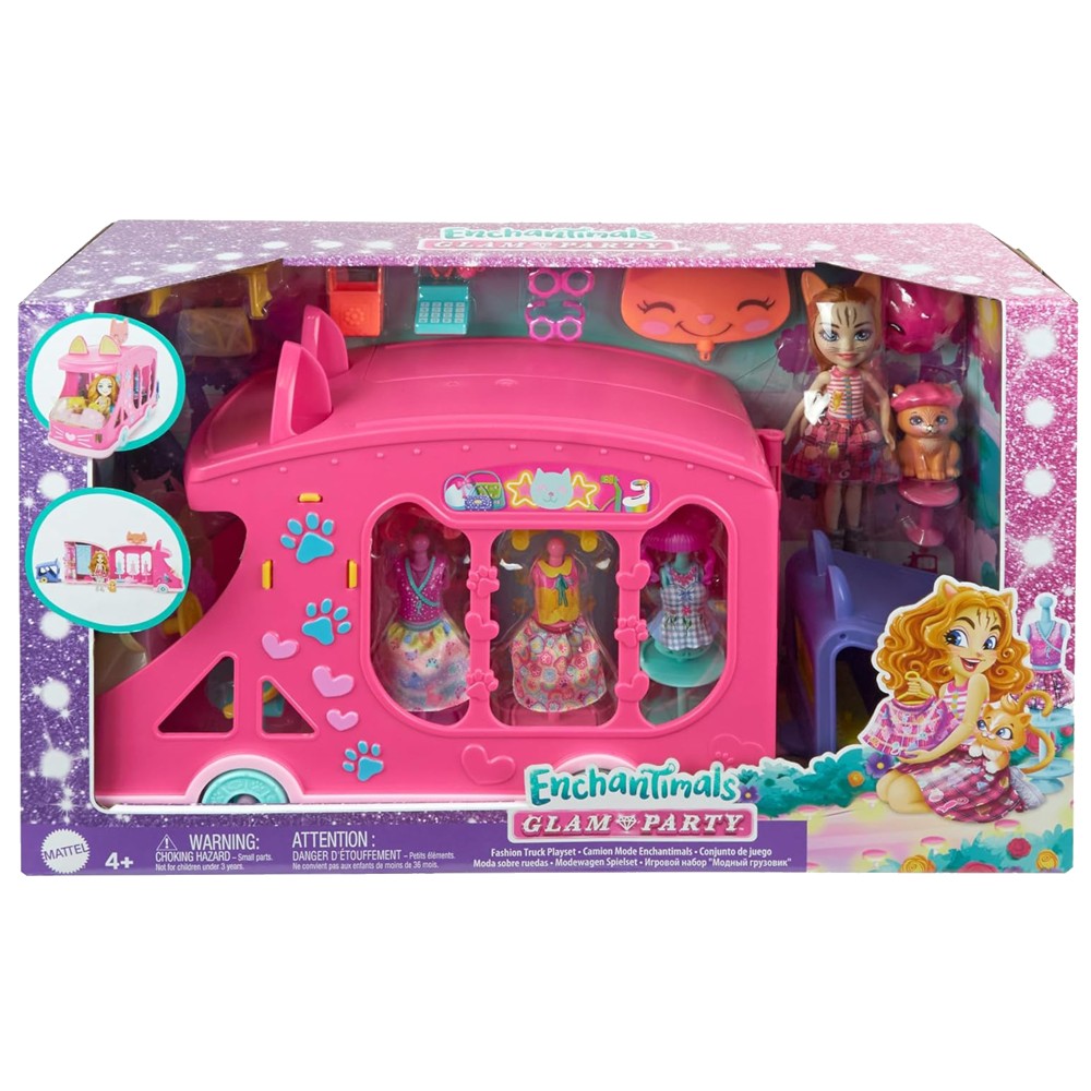 Kids will love this adorable set from the Enchantimals Glam Party series that includes the Mobile Fashion Studio and a sweet Kitty doll! Designed for kids ages 4 and up, this set brings endless creativity and fun to fashion lovers and the magical world of Enchantimals.