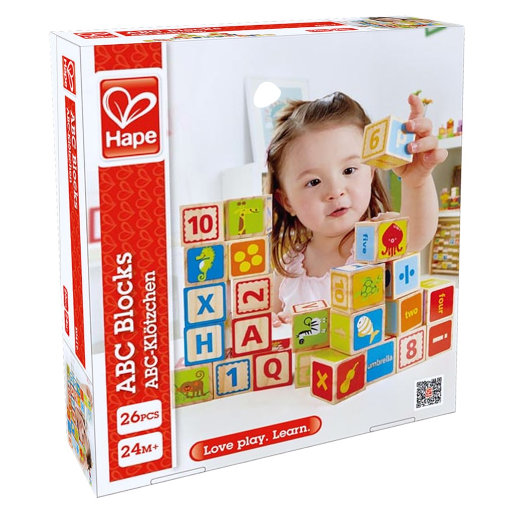 This educational toy, Hape ABC Blocks, is designed to help children develop important motor and cognitive skills from the age of 2. With 24 pieces divided into different shapes, these wooden cubes contain the letters of the alphabet, which help the child become familiar with language and develop reading and writing skills. The quality of the material is high, as the cubes are made of natural wood, safe for children and durable. The pieces are covered in bright and attractive colors, which stimulate the child's creativity and imagination.