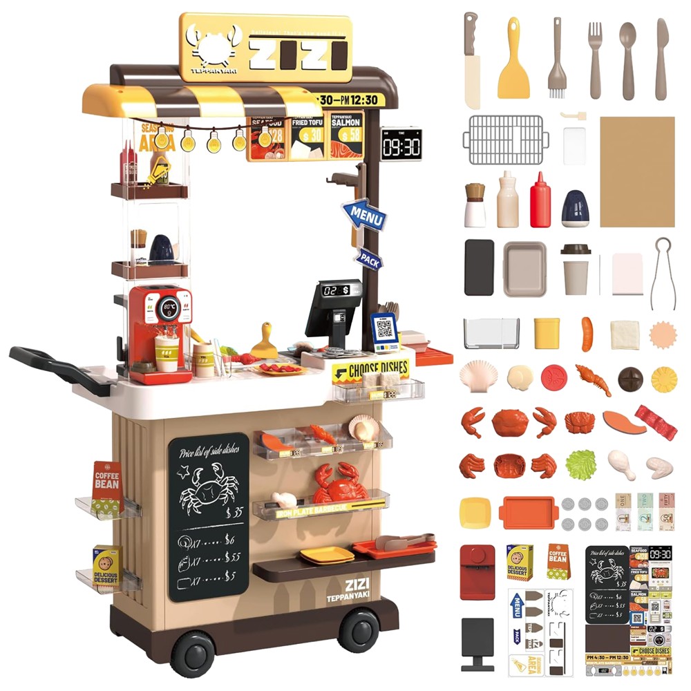 Battery-powered kitchen set, an interactive and fun toy that brings the world of cooking directly into the child's room. Measuring 102 cm long, this set includes detailed and functional kitchen elements that work with batteries, offering movement effects, sounds and endless fun during play.