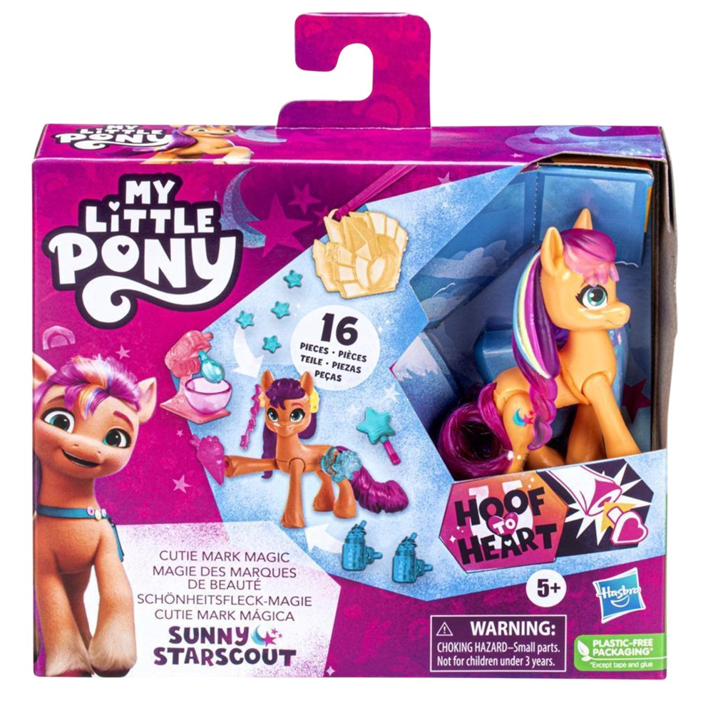 The My Little Pony ""Cutie Mark Magic Sunny"" toy is suitable for children over 5 years old. With bright colors and a beautiful design, this toy brings the character Sunny to create wonderful stories and stimulate the imagination. Designed for role-playing games and endless adventures, it helps children develop creativity and social skills.