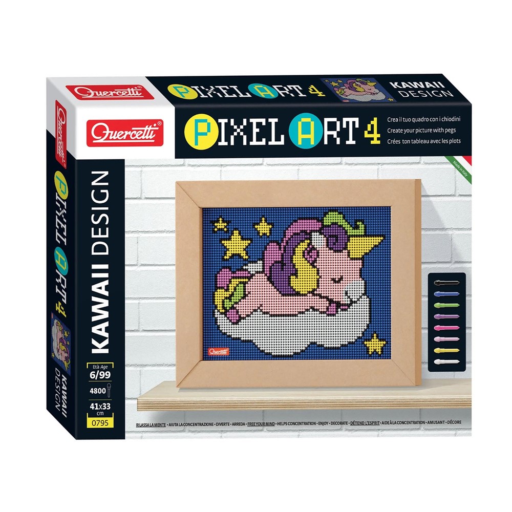 Quercetti Pixel Art, created from a material that has no toxic or harmful content, helps develop motor skills as well as imagination and senses. With this game you can create your own mosaics and thanks to its frame it can be used for home decor. The package contains 4800 pins in different colors. Age +6 years.