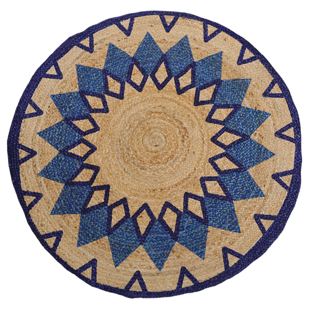Circular rug, 100% jute, beige/blue, Dia. 120 cm