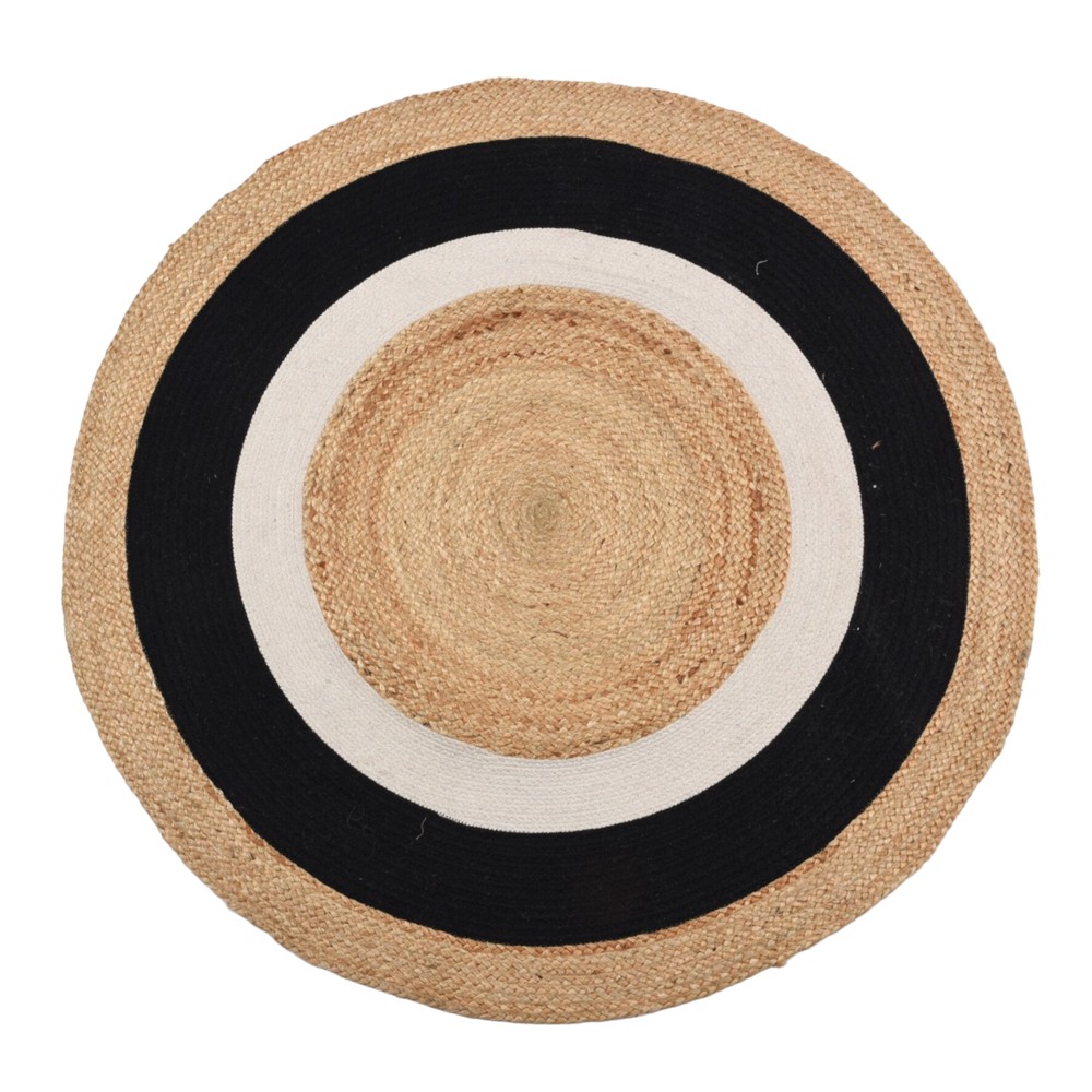 Circular Rug, jute/cotton, beige/white/black, Dia. 120 cm