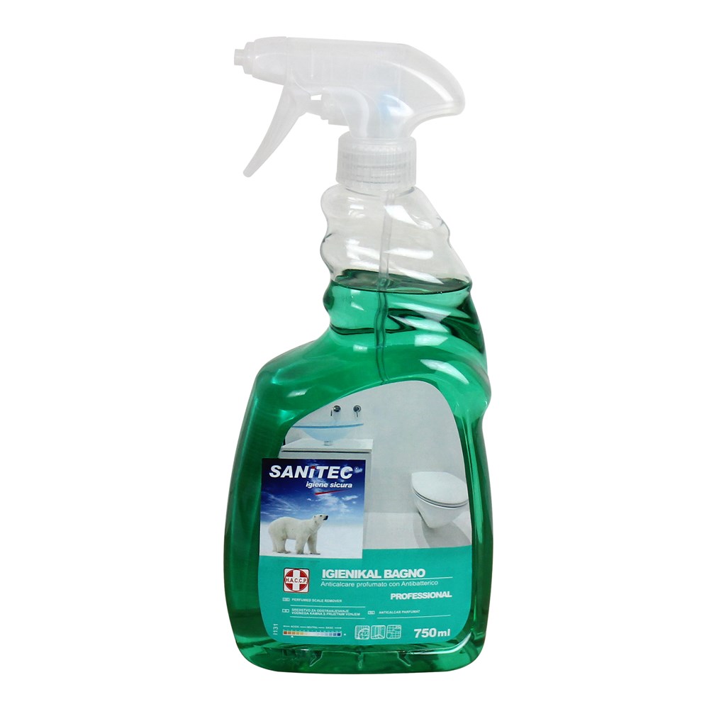 Scented dissolution of limestone descaling detergent formulated to remove dirt, residues of limestone and water stains from all surfaces. Thanks to the presence of quaternary ammonium salts ensures antibacterial action. The specific formulation lëaves surfaces shiny long and does not affect the chrome.Use: sinks, showers, taps, sanitary ware, tilës, steel, stainlëss steel, chrome, ceramic, etc. ..Dosage: ready for sinks, faucets and showers. For floors dilute 1-2%. 1-2 plugs per 5 liters of water