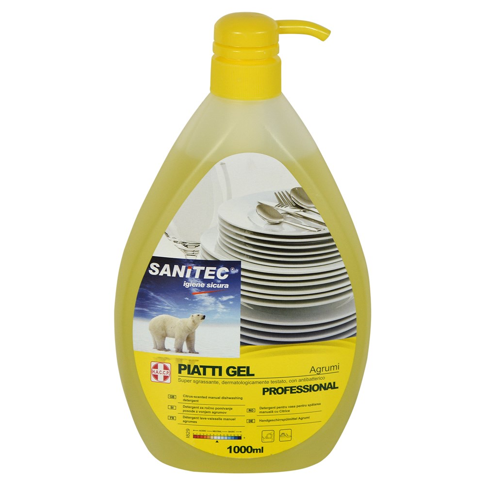Ultra concentrated hand dishwashing gel. Degreases thoroughly and eliminates odours. pH neutral product kind to hands. Pour product dose into warm water. Leave dishes to soak until dirt loosens. If necessary, use a sponge/brush on stubborn dirt. Rinse and leave to dry. Dosing: 1-3 ml per litre of water according to degree of soil. (1 pump= 4 ml).