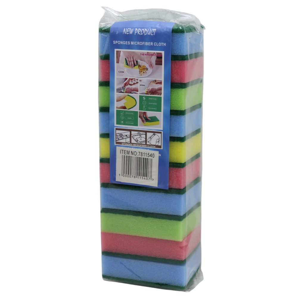 The cleaning sponge set consists of 10 pieces of mixed colored sponges, ideal for cleaning various surfaces. Perfect for cleaning dishes, furniture and other surfaces.