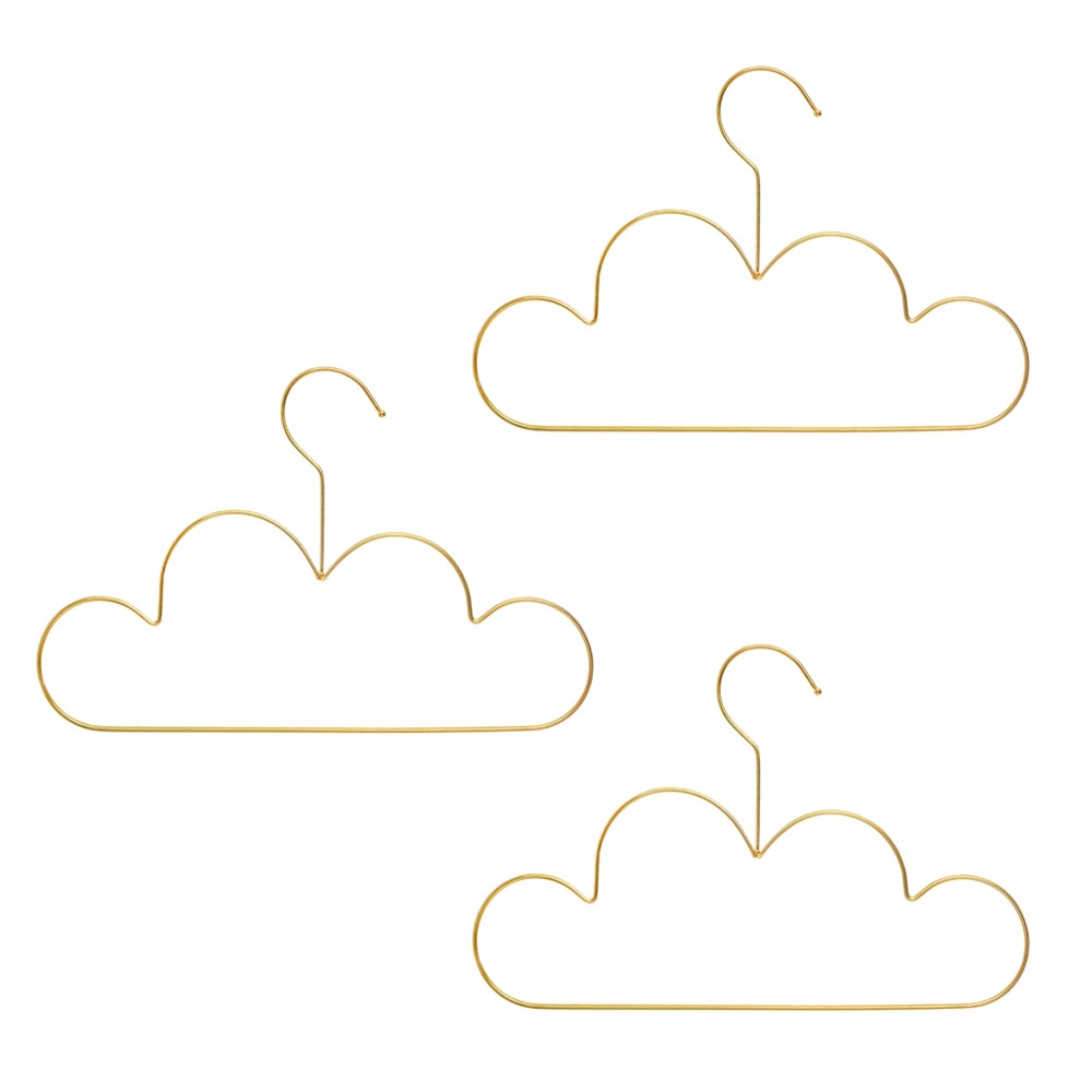 Set 3. Clothes hangers in the shape of clouds. Made of metallic material in gold color. Suitable for hanging baby clothes.