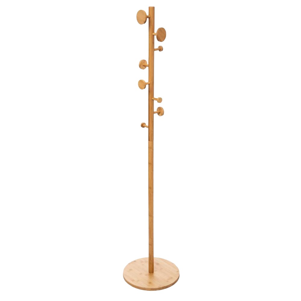 Coat tree, 8 hooks, bamboo, natural, Ø38 xH175 cm