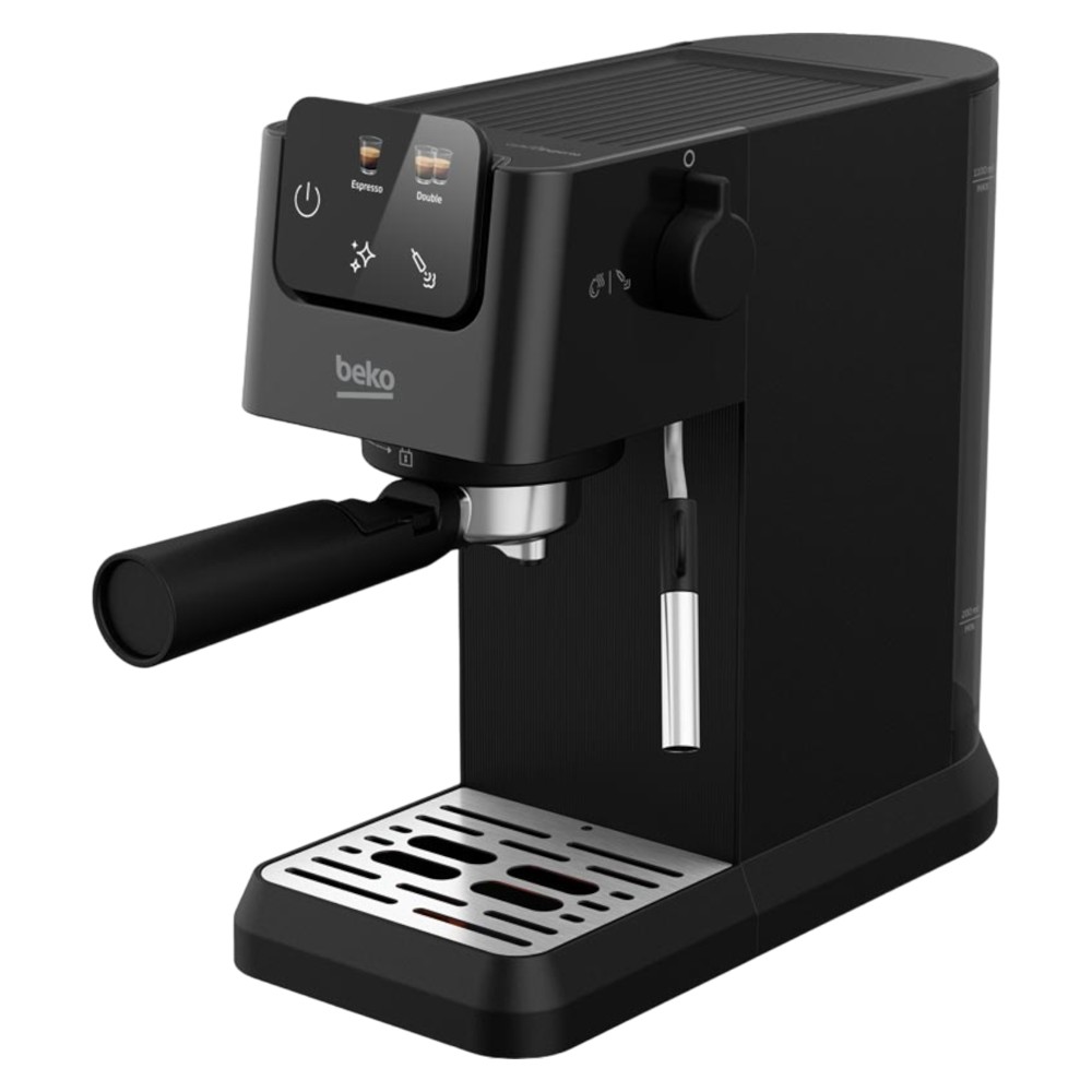 The Beko CEP5302B is a small, stylish espresso machine, made of black ABS, with a simple, colorful touchscreen. Its pressurized filters will allow you to obtain a good espresso with ground coffee and an entry-level coffee grinder . In addition, its one-cup filter will also allow you to use ESE pods , a very practical option for decaf, for example. The Beko CEP5302B is equipped with a thermoblock, for rapid heating in less than a minute ! On the touch screen , the colored icons will give you direct access to the Expresso or Double Expresso functions. Steam is also accessible on the screen with its own icon. This small Beko CEP5302B espresso machine is very intuitive and ideal for entering the world of coffee machines with percolator. With this Beko espresso machine, you can program the quantity in cups : from 30 to 60 ml for an espresso, from 50 to 100 ml for a double espresso. The stainless steel steam nozzle can be adjusted to easily froth milk for your favorite milk drinks. Don't forget to bring a milk pitcher big enough for your favorite milk drinks! A dial on the side is provided to dispense hot water via the steam nozzle, a useful function for lengthening your coffee if necessary. The drip tray removes so you can use larger cups. The Beko CEP5302B espresso machine has a 1.1L water tank. A button on the screen is provided to do a flush (rinse the extraction group between each coffee), to avoid having ground coffee residue. An orange light on the screen will let you know when the machine needs to be descaled. This Beko coffee machine goes into automatic standby mode after 29 minutes of inactivity.