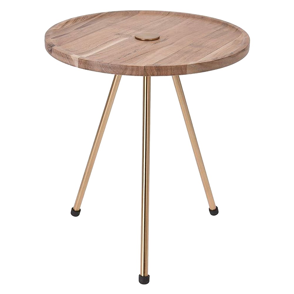 Coffee table, Metal frame (golden), acacia, natural, Ø33 xH37 cm