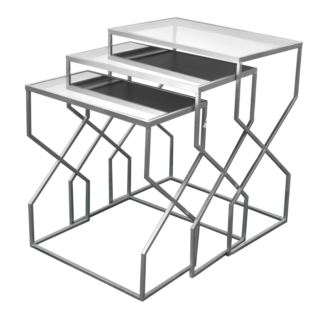 You're reviewing:Coffee table set of 3 pieces, metallic, silver, 1-55x30xH46.5 cm; 1-60.5x35xH52.5 cm; 1-64x40xH75 cm