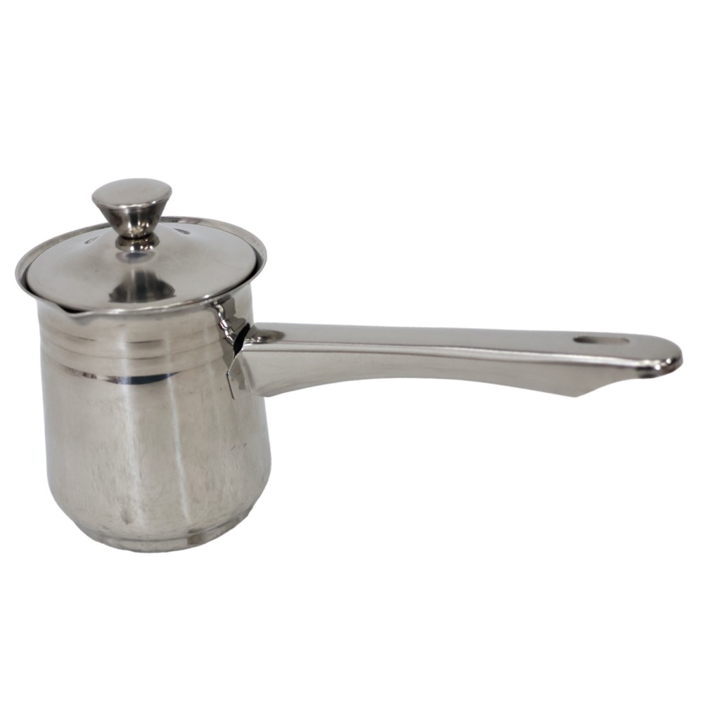 Coffee jug with lid, made of stainless steel in silver color, with a capacity of 180ml and dimensions Dia.6.5x7 cm. Thanks to the quality of stainless steel, you can easily prepare your favorite coffee. Thanks to the stainless steel lid, the coffee or tea retains its aroma for a longer time. Suitable volume for 3 cups.