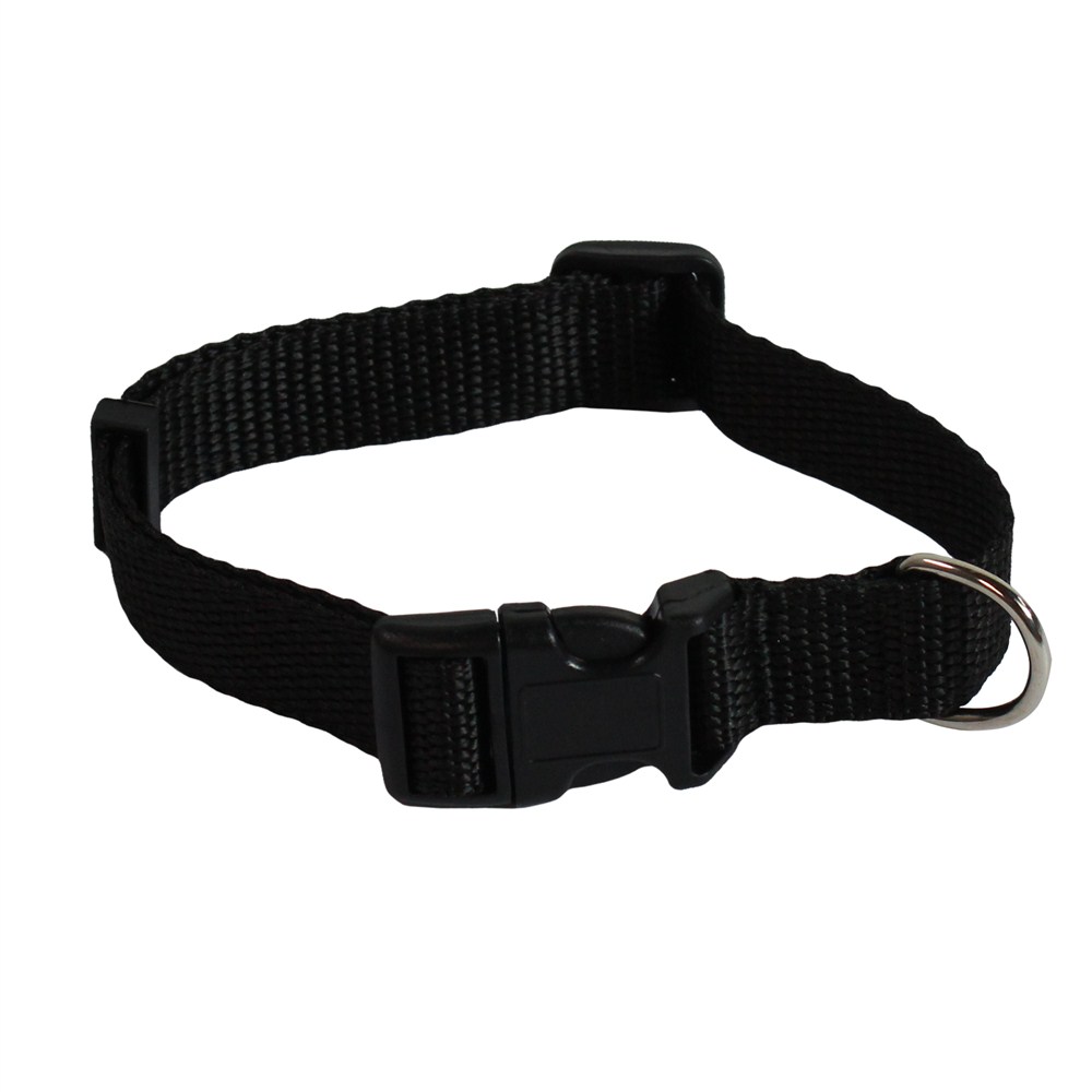 Nylon collar for dogs, adjustable length from 30cm to 46cm. Choose an adjustable collar for a custom fit on your dog. Resistant single ply nylon collars feature tough plastic buckles and built-in adjustment slides, heavy duty stitching, and metal d-rings
