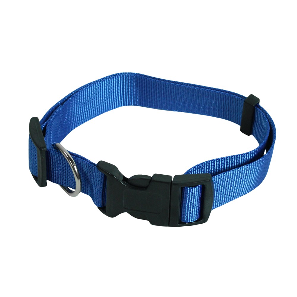Nylon collar for dogs, adjustable length from 38 cm to 62cm. Choose an adjustable collar for a custom fit on your dog. Resistant single ply nylon collars feature tough plastic buckles and built-in adjustment slides, heavy duty stitching, and metal d-rings