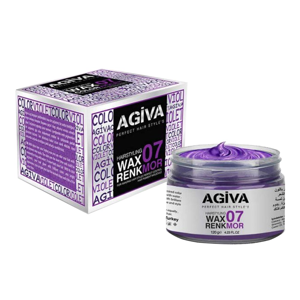Colored hair styling wax, in purple color, with a formula enriched with beeswax, castor wax, shea butter, lanolin and other ingredients with emollient properties for softening the hair, with a protective, moisturizing and nourishing effect on the hair fibers. The wax is used for styling the hair, while maintaining the hairstyle for a long time, to give volume and shine to the hair and it applies on the hair a temporary dye that lasts a long time, which does not damage the hair and can be easily cleaned when washing with soap and water. This product is suitable for non-professional use.