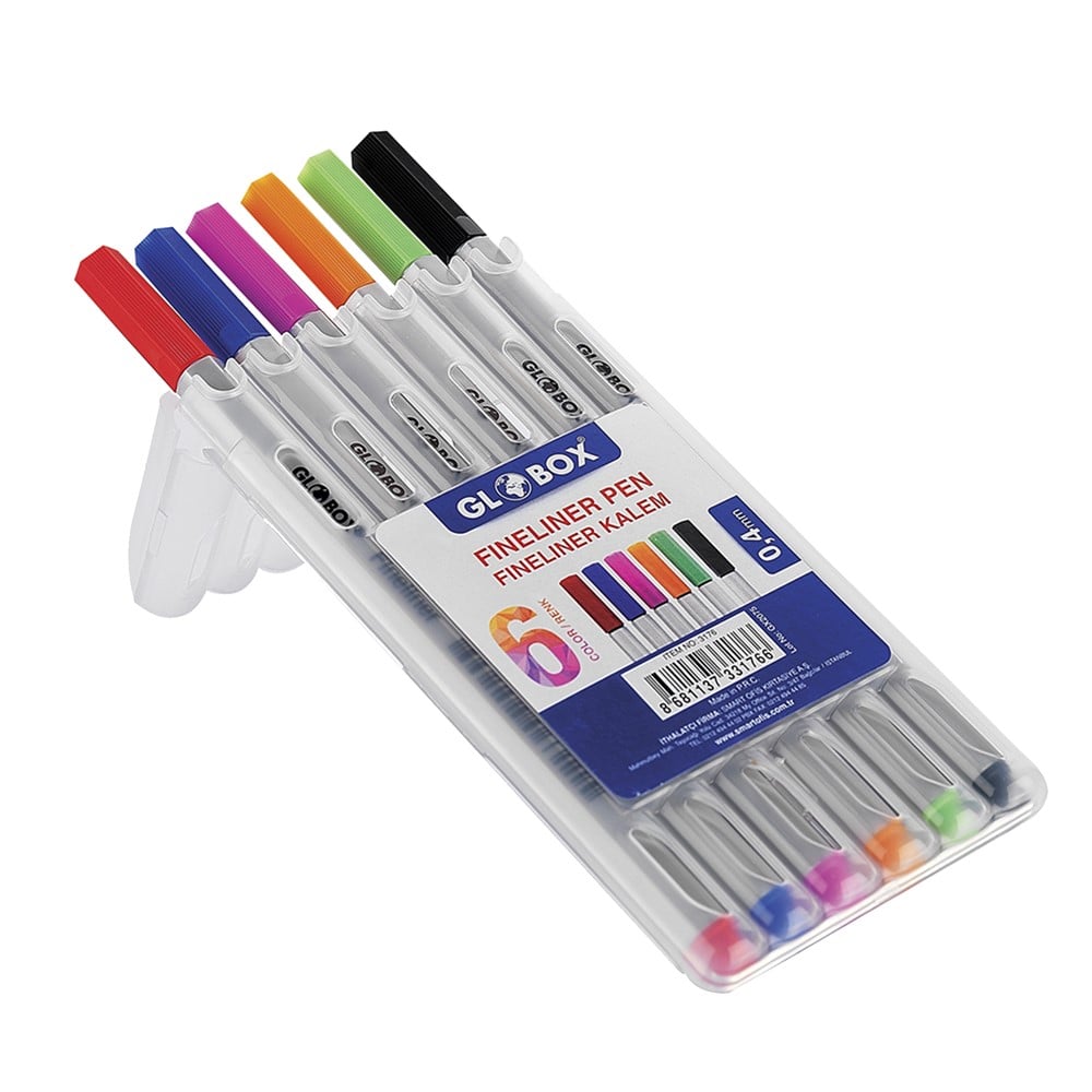 Colored pens, made of plastic material, with a thin tip and with a line width of 0.4 mm, in 6 different colors. The colored pens can be used to write, sketch or to take various notes. The pens are equipped with a protective cap and they have a hexagonal-shaped ergonomic structure, which makes them easy to hold and practical to use. This product is suitable for professional and non-professional use.
