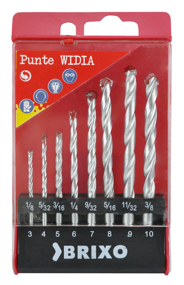 8 Piece Masonry Drill Set. Longer life in concrete and faster drill speed in comparison to the competition. It is extremely bend-resistant. Impact-resistant heavy-duty drill bit, for impact drills up to 1000 Watt and rotary hammer with chuck tool holder. Suitable for fixing holes and drilling in concrete, artificial stone, masonry and bricks. Kit Consist: 4, 5, 6, 8,10mm.
