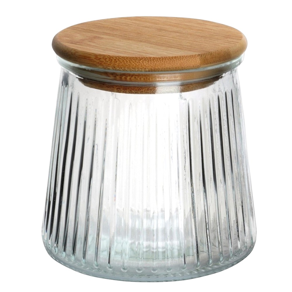 The 680 ml jar is made of clear and transparent glass, combined with a natural bamboo lid. With dimensions Dia.11xH11 cm, it is ideal for storing dry foods such as tea, coffee or various spices. Its minimalist design offers an elegant and attractive appearance, while the ecological and recyclable material makes it a perfect choice for your kitchen.