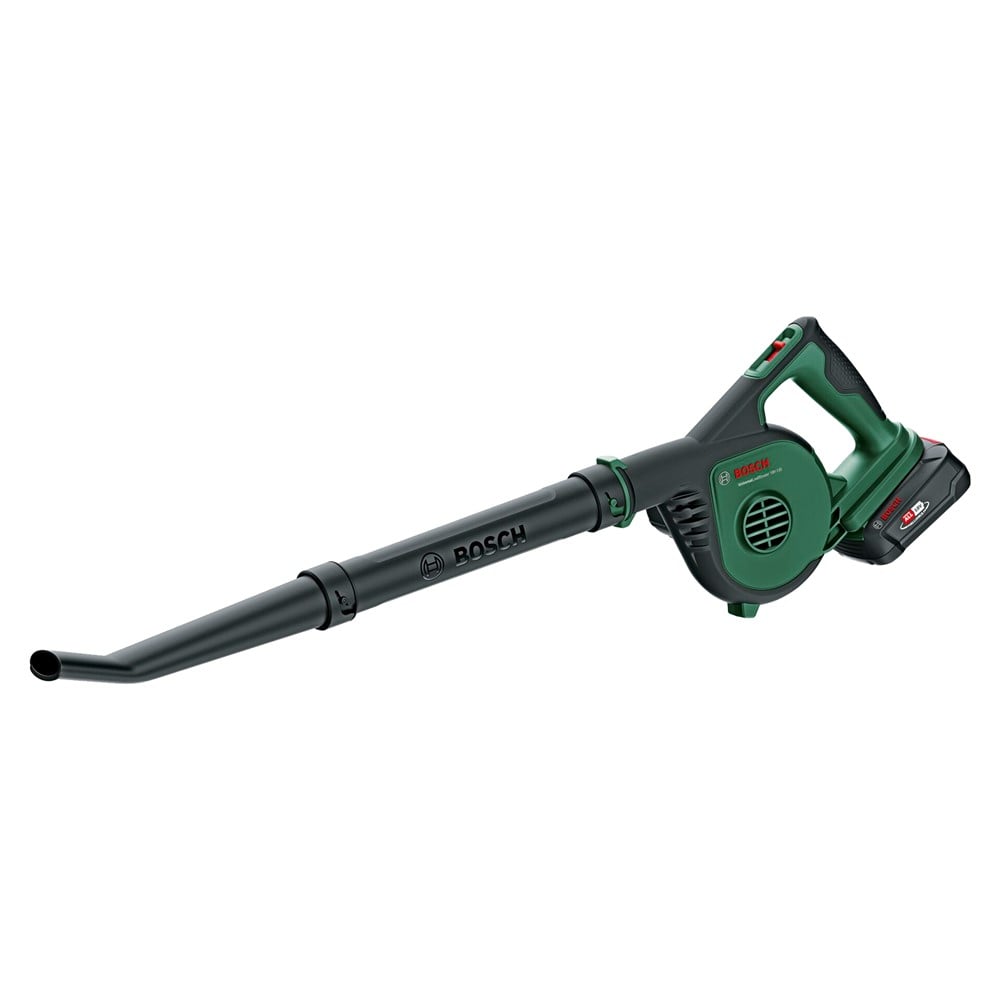 The ALB 18 LI cordless leaf blower offers the flexibility and mobility needed to work in any area of ​​the garden. The efficient 18V lithium-ion battery ensures that this device can reach any place at any time. The device weighs only 1.8 kg and has an ergonomic handle for comfortable use. With a maximum airflow speed of 245 km/h, the leaf blower delivers effective results. The device is equipped with Syneon technology, which regulates energy consumption for optimal performance and a longer operating time. The device is part of the POWER FOR ALL ALLIANCE. A single battery can power a number of other different Bosch appliances.