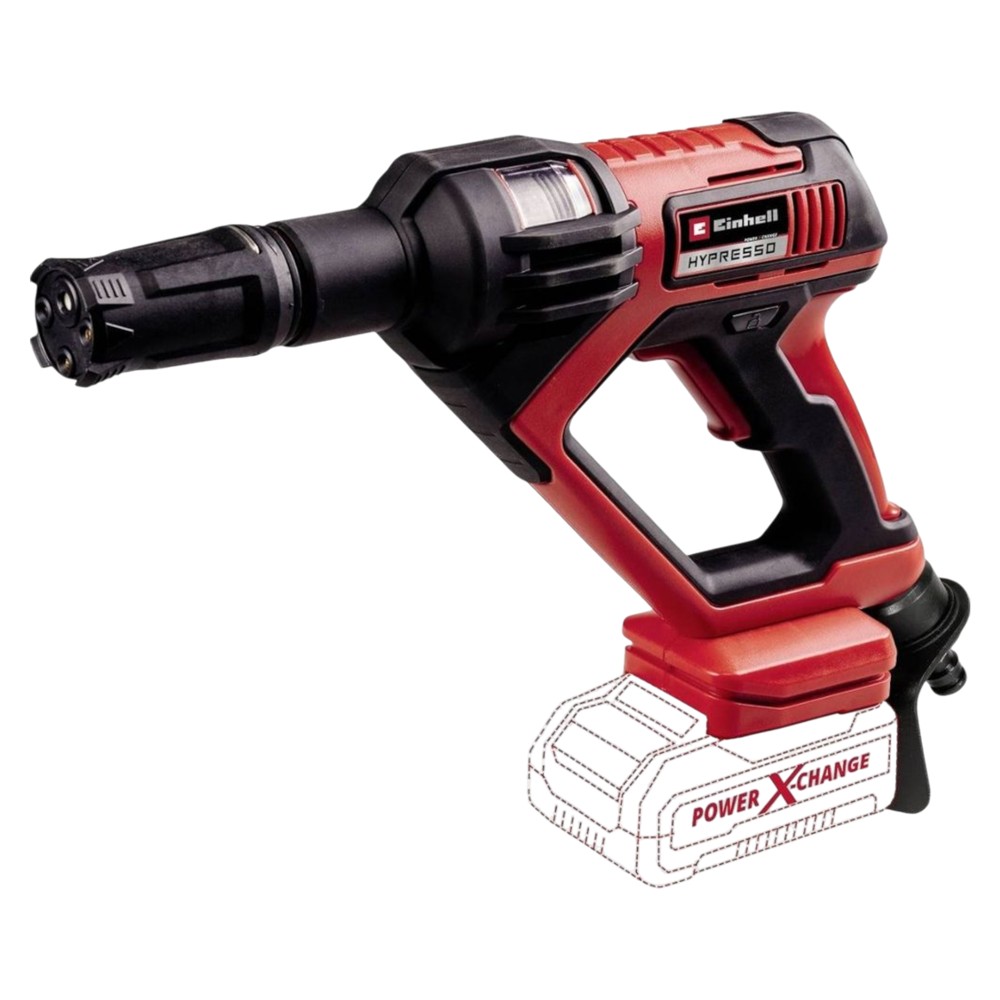 The Einhell cordless pressure washer gun Hypresso 18/24 Li-Solo provides cordless flexibility for cleaning and watering around the garden and terrace. The cordless pressure washer gun is a member of the cordless Power X-Change family, where all batteries, system devices and chargers can be flexibly combined. The cordless medium-pressure washer operates at a pressure of 24 bar and a flow rate of up to 240 litres of water per hour. In this way, the Hypresso cleaning gun becomes a battery-powered pressure washer in a handy small format. With ECO mode, the battery life of the compact cleaning device can be extended at the touch of a button. The spray gun is equipped with a 4-way adjustable nozzle, through which it is possible to work with a point jet or wide jet, as well as with a spray jet for watering or with a rotary jet for cleaning stubborn dirt. The pressure can be regulated directly on the spray gun for an easy change from cleaning to watering. The medium-pressure cleaning gun can not only be connected to the garden hose thanks to the hose connection, but can also suck in water from buckets, canisters or a pond thanks to the supplied water filter and 5-metre suction hose. Two extension lances, a foam spray bottle, which is ideally suited for car washing, and a mesh bag to store the accessories are also included in delivery. In addition, a splash water protection is included, which is simply pulled over the Power X-Change battery to provide additional protection against splashes and moisture. The cordless cordless pressure washer gun Hypresso 18/24 Li-Solo is supplied without a battery or charger. These are available separately, e.g. as a practical starter kit.