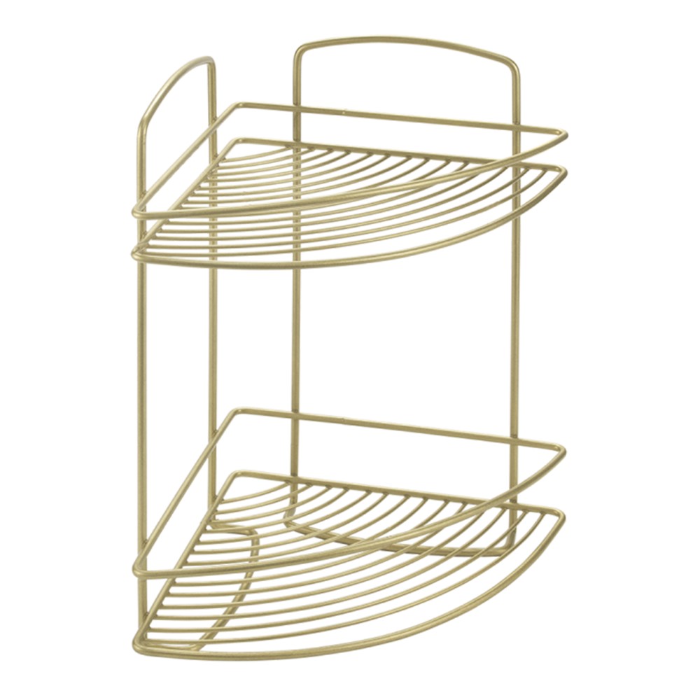 An corner shelf ideal for hoding sponge and other toilet items. With its classic desin and gold color, this shelf will give style to your bathroom. The toilet shelf with 2 holders gives you ample space for organizing products for daily use. This shelf can be mounted on the wall in corner parts, where it saves you floor space. Combines very well with accessories in black. Its constituent material is polytherm® brass coating, resistant to rust.