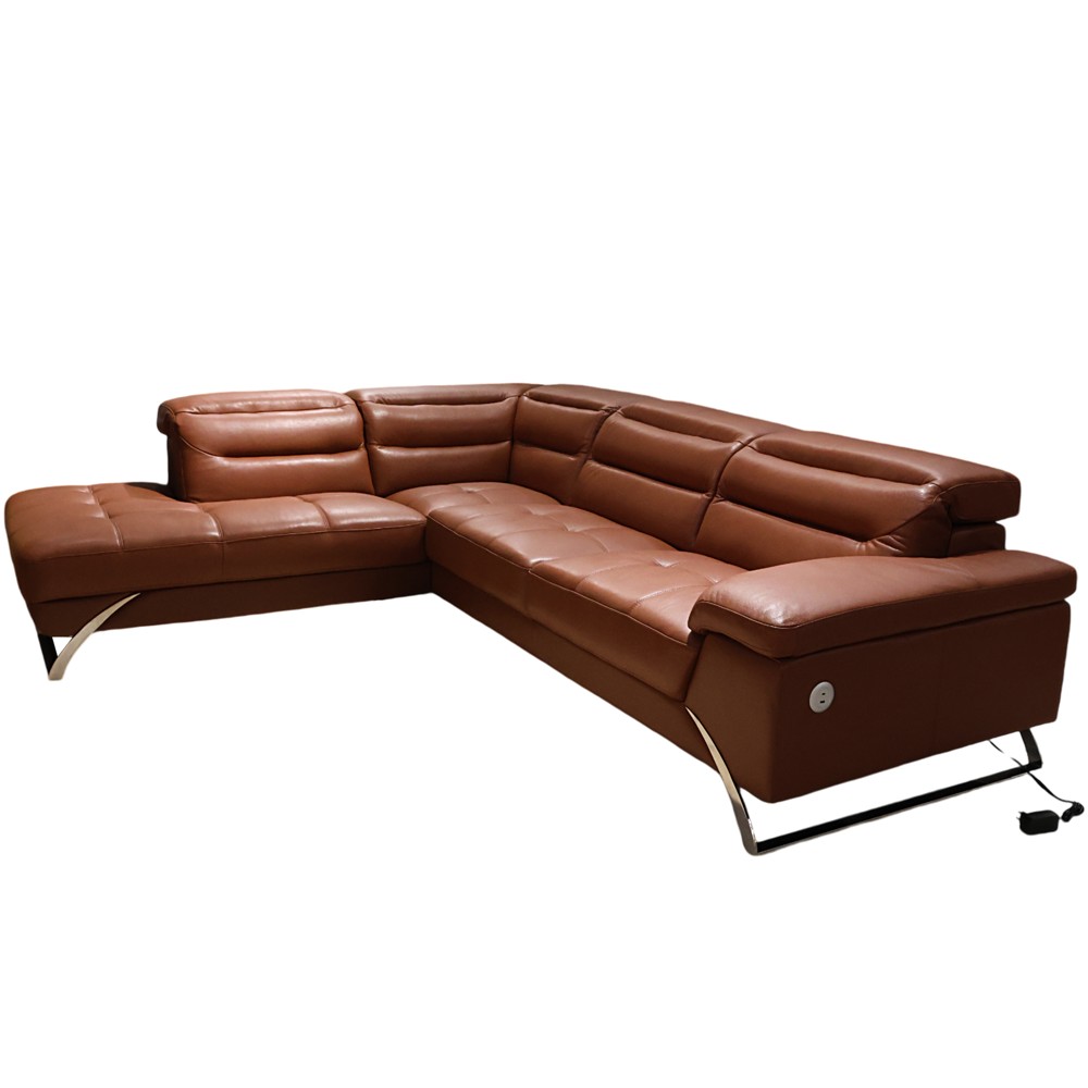 Corner sofa, left, leather, metal legs, reddish brown, (290x230)x104xH75/98 cm