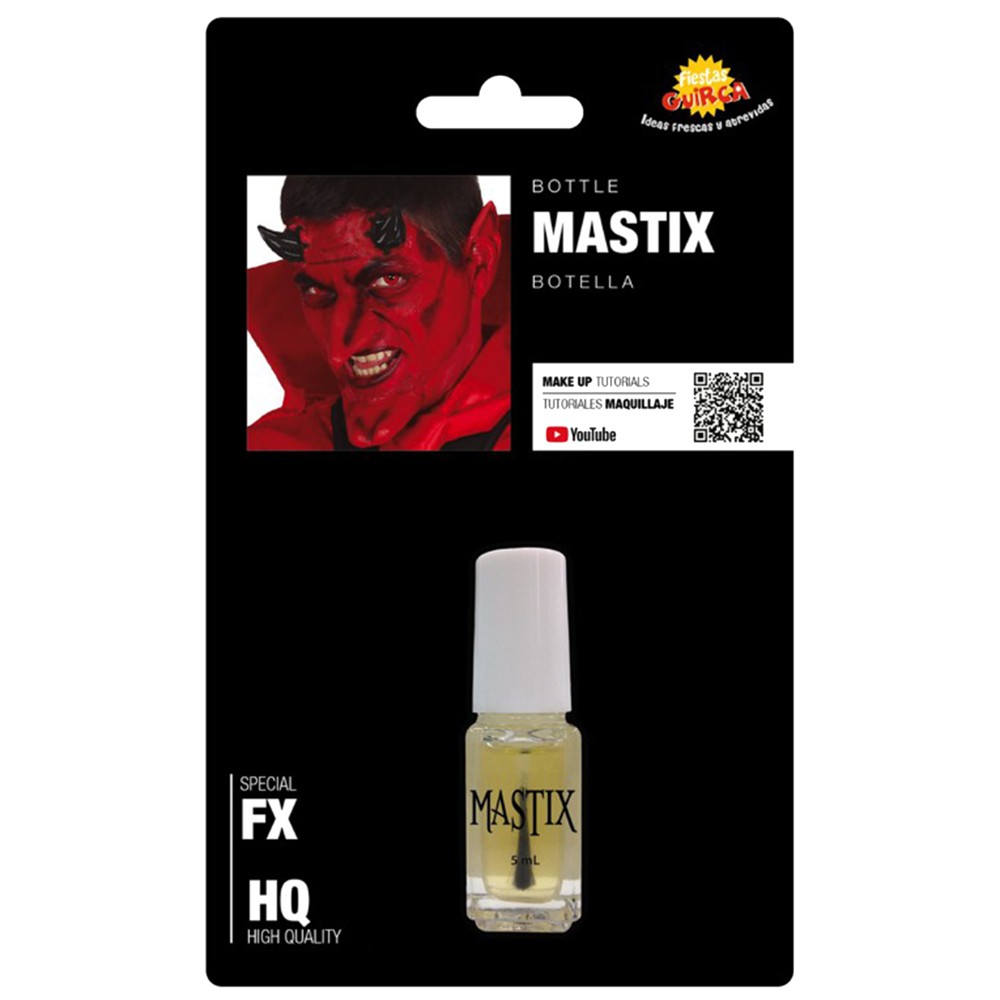 Cosmetic brush adhesive. This product is used for gluing additional Halloween accessories such as scars, mustaches, or other accessories made of latex material. It has a capacity of 5 ml.