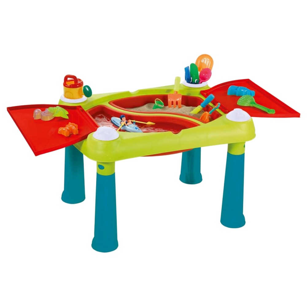 Multifunctional table for children made of plastic material in size 79x56x50 cm. When open it can be used with sand and water games, while when closed it can serve as a table for creative crafts, drawings or paintings. High-quality plastic materials and an ergonomic design ensure safety and comfort of play.