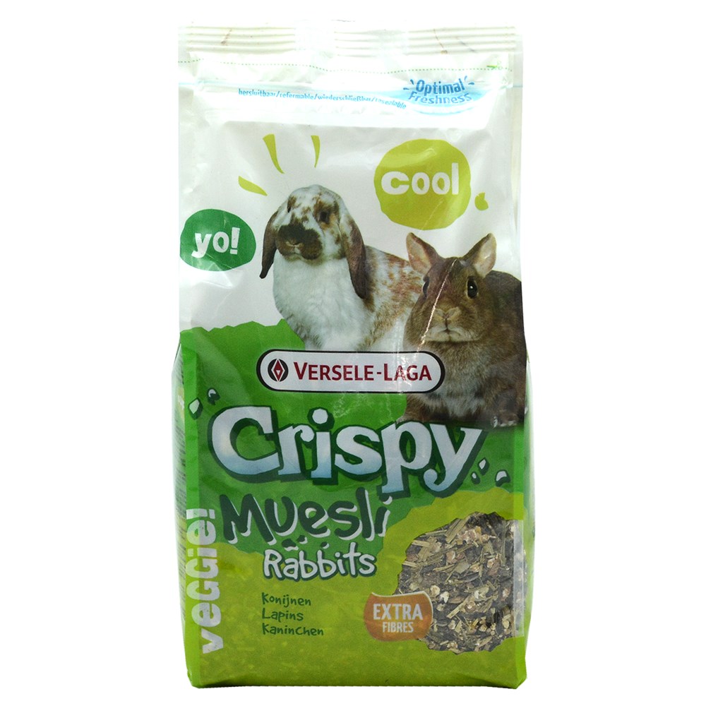 Crispi Rabbits is a delicious full-bodied, high-fiber food in the form of a selected mixture of grains, grains and contains all nutrients for a healthy and active animal life.The Crispy Muesli has a very pleasant smell reminding hay dry dried protein 16% fat content 3.5%, thick fiber 14%, hard ash 7%, calcium 1.1%, phosphorus 0.55%. vitamin A 11100 m.j. vitamin D3 1100 m.j. Vitamin E 78 mg, iron E1 97 mg, iodine E2 2 mg, E4 10 mg, E5 73 mg manganese, Zinc E6 70 mg, selenium E8 0.19 mg, color antioxidants.